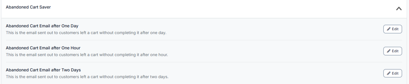 Abandoned Cart Email after One Day/One Hour/Two Days