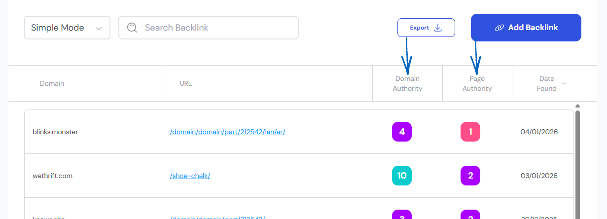 The domain authority scores you see next to your backlinks on the platform is a metric that predicts how well a website will rank in search engine results.