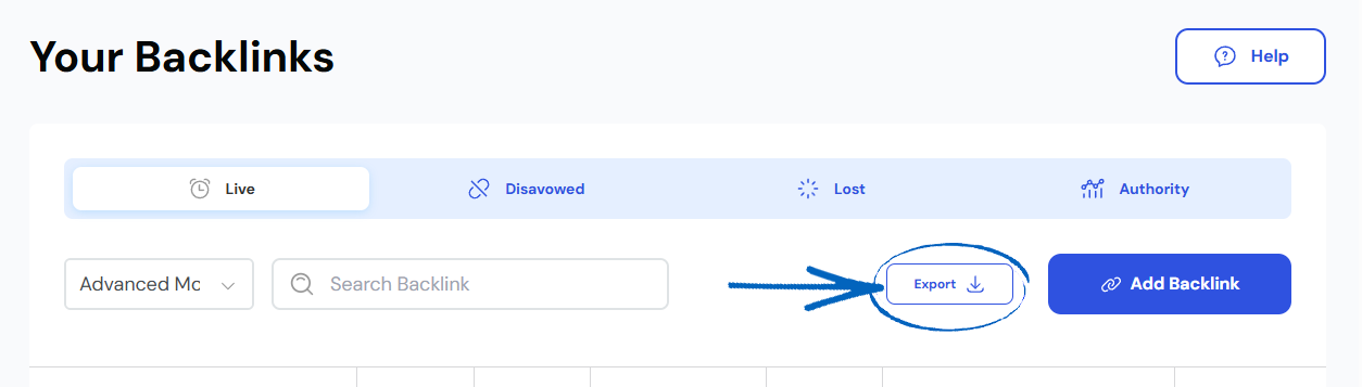 1. From the dashboard, click Backlinks and then select Your Backlinks from the drop-down menu: