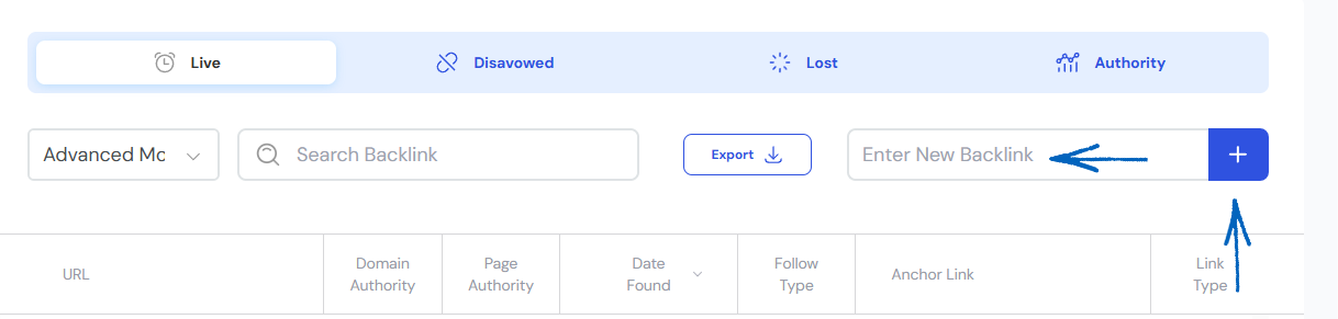 2. You then need to paste the backlink into the field provided and click the plus symbol: