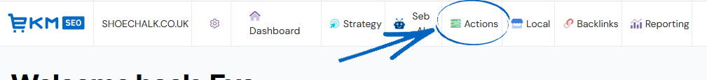 The pages under this tab are the ones you will probably use the most on EKM AI. Your Actions is the list of tasks that need to be completed regularly to maintain your SEO strategy. Here you can access: