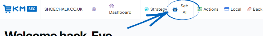1. From the dashboard, click Seb AI and select Page Prioritisation from the drop-down menu: