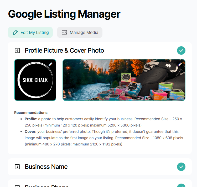 First, make sure any updates you’ve made to your phone number or address in the Listing Manager have been saved by clicking Save Changes at the bottom of the screen. Also, double-check that your Google Business Profile is verified - unverified profiles can sometimes block changes from going through.