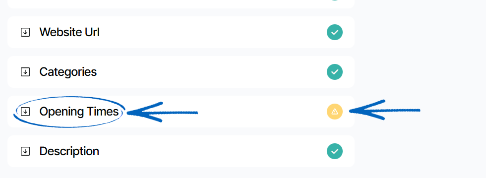 8. Scroll further down the page, and you’ll see any issues that require your attention indicated with a yellow caution symbol. Click the element: