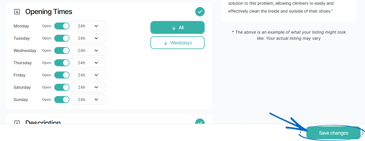 10. When you have amended your Opening Times, click Save Changes in the bottom right-hand corner: