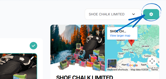 1. If your business has more than one physical location, click the cog in the top right-hand corner: