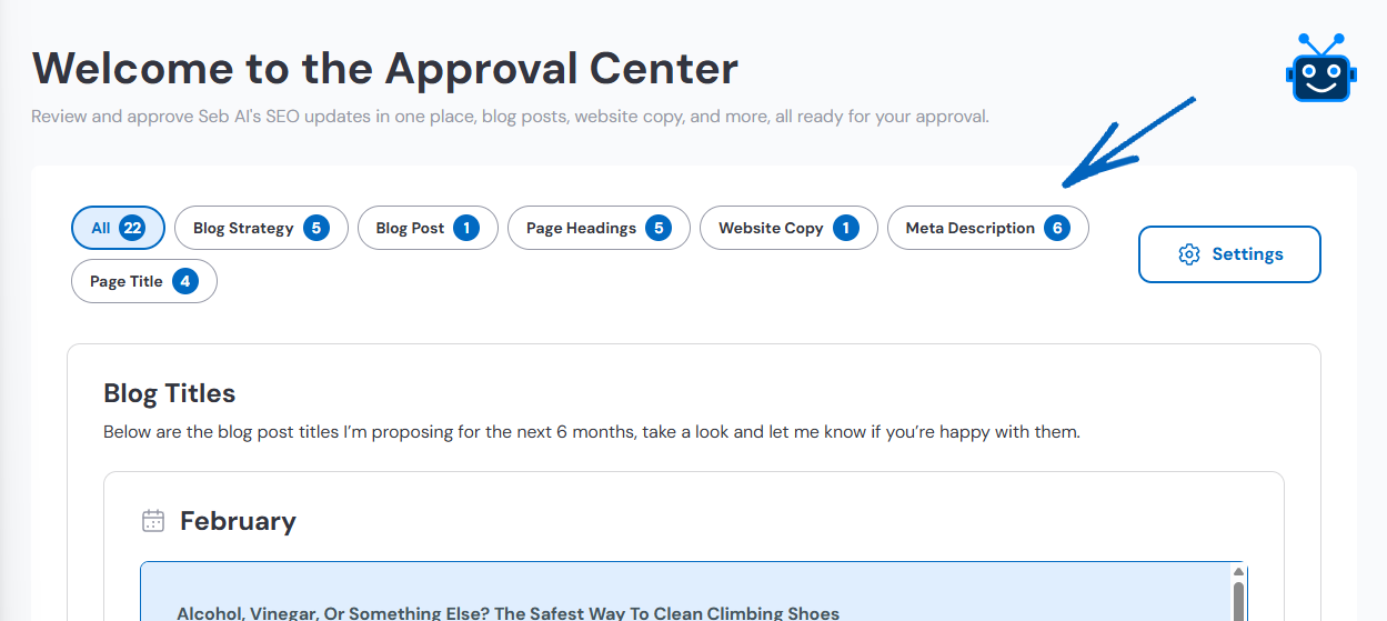 Yes, absolutely! If you’re unsure about your blog strategy, just click Give Feedback and leave your feedback within the Approval Centre. Seb AI will try to improve the strategy based on what you say.