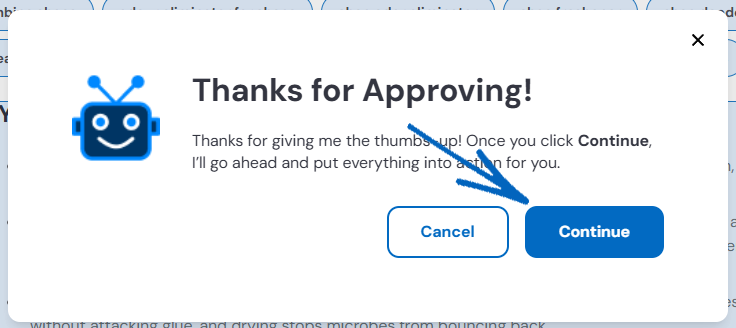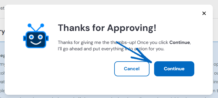 9. When you click Approve, you’ll see this modal. Click Continue: