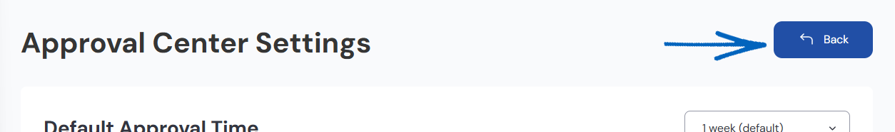 25. To return to the main Approval Centre page, scroll to the top and click the Back button on the top right-hand side: