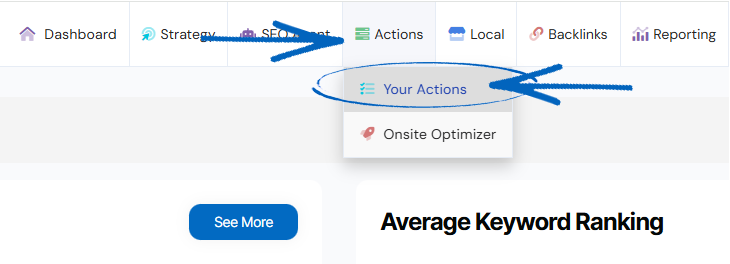 This Month's Actions - When you first click into the ‘Action’ section of the platform, you will view this month's actions. This means that you will see several actions that we suggest you complete this month. You won't see all the Actions you have on the platform here. You'll see a condensed amount. These actions should take you as many hours to complete as you've said you can commit to SEO per month.