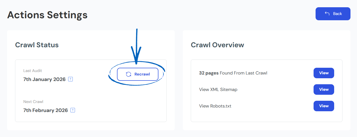 If you've made significant changes to your website, then you will want the platform to re-crawl your EKM online shop, so the actions are completely up to date.