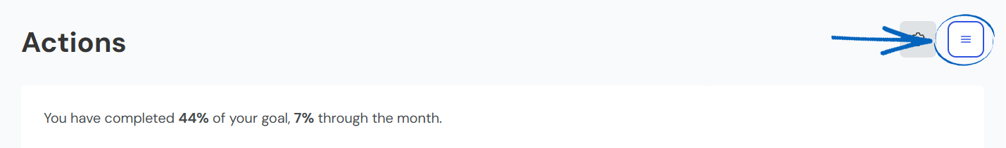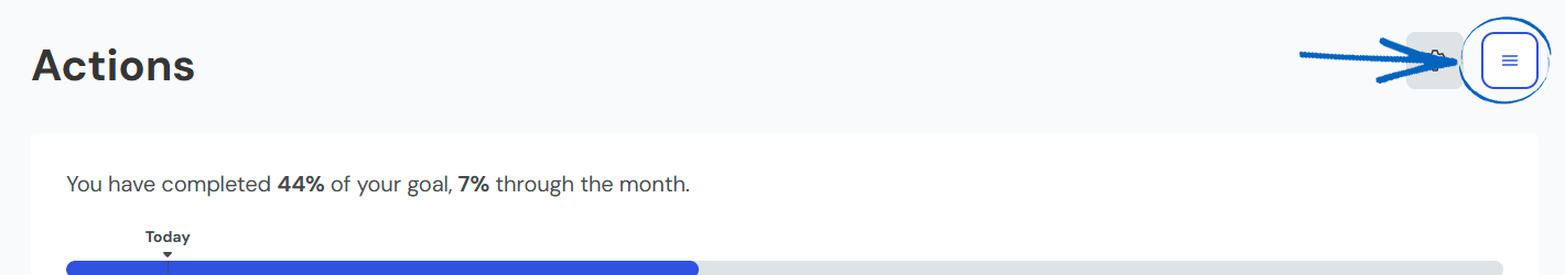 1. Scroll to the top of the Action page, and click the button with the three horizontal lines in the top right-hand corner: