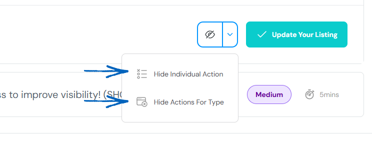 2. From the drop-down options, you can choose whether to hide that individual task or whether to hide all tasks of that type:
