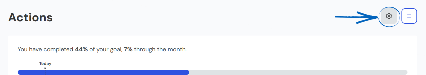 1. To do this, click the Settings cog in the top right-hand corner of the Actions page: