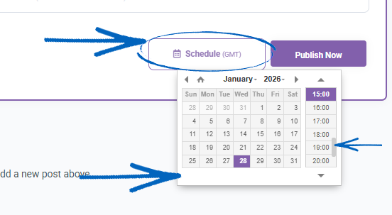 6. When you have completed your fields, you can choose to click either Schedule (to publish the post at a later date) or Publish Now: