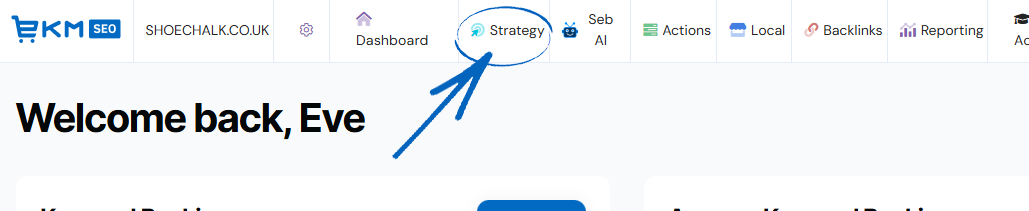 1. From the dashboard, click the Strategy tab, and select Keyword Research from the drop-down menu: