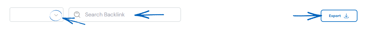 3. Near the top of the page, you have a drop-down menu on the far left-hand side. You can use this to select one of your competitors. Next to this is a search bar for you to search for a specific backlink, and to the far right-hand side, there’s an Export button for you to download this information to a spreadsheet for further analysis:
