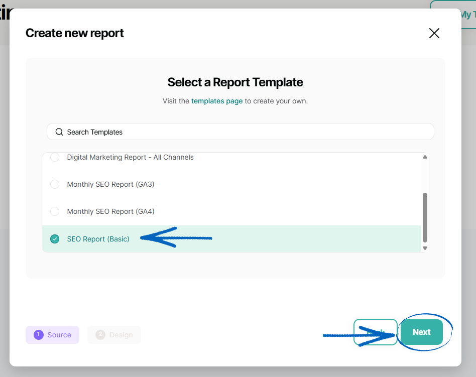 2. In the modal that appears, tick the box next to the report that you would like to see, and then click the Next button: