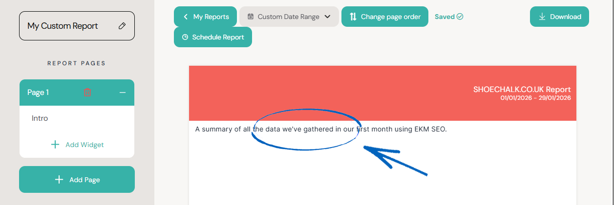 [intro] The Report Builder is a tool that shows the work behind your website's SEO improvements. Your EKM SEO account can pull data from Google Analytics (GA4) and Google Search Console, so you get a complete picture of your website's performance. [/intro]