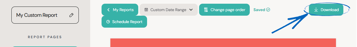 8. Repeat this process with the rest of the pages of your report, editing the data and adding widgets if and where you think them necessary. When you have finished, you can scroll to the top of the page and click the download button. There you can choose whether to download a PDF or view a browser version of your report: