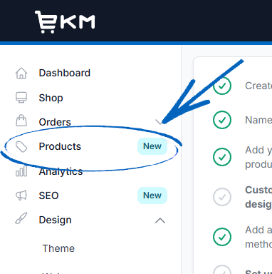 1. On the Dashboard, you’ll see Products in the left-hand side menu. Click it: