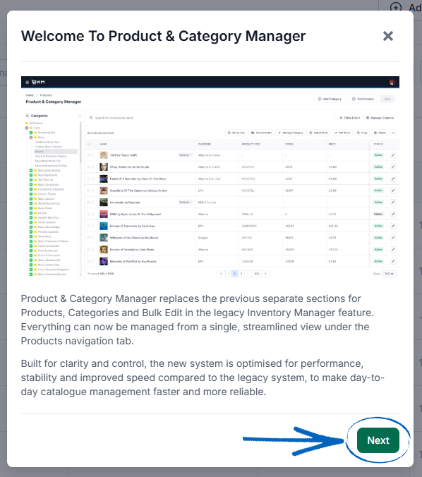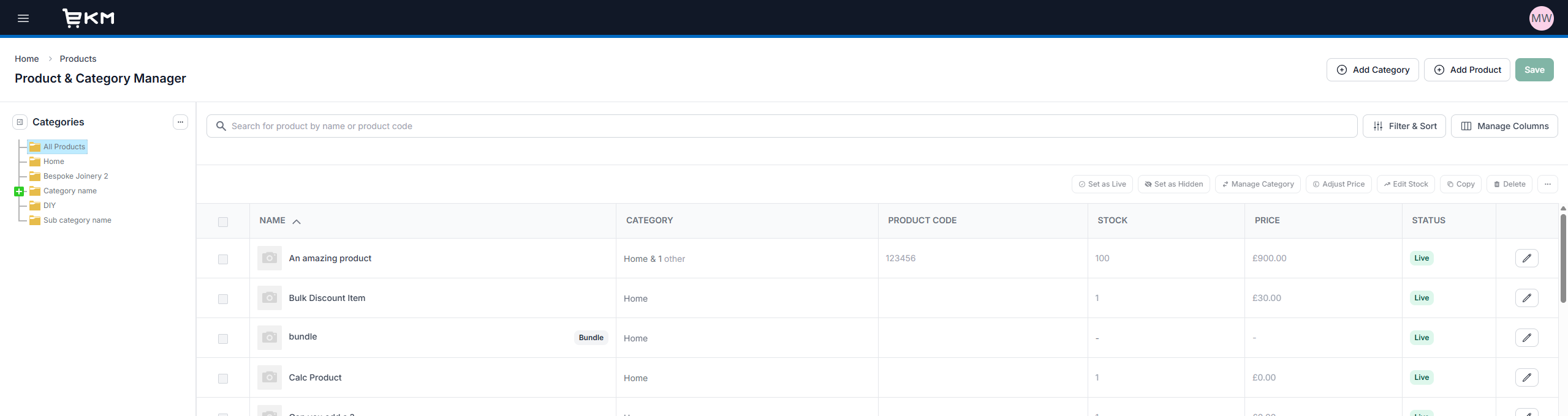 [intro] The Inventory Manager is now the Product & Category Manager, replacing the previous separate sections for Products, Categories and Bulk Edit in the legacy Inventory Manager feature. Everything can now be managed from a single, streamlined view under the Products tab on your EKM online shop dashboard. [/intro]
