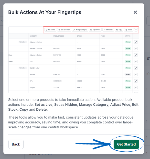 Edit Stock - Amend the stock amount of one or more products.