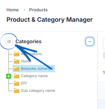 9. To minimise the Category Tree, click the button in the top left-hand corner: