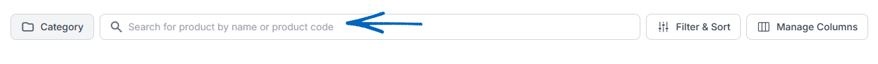 10. Across the top of the page, you’ll see a search field. You can use this to search for individual products according to their Product Name or Product Code: