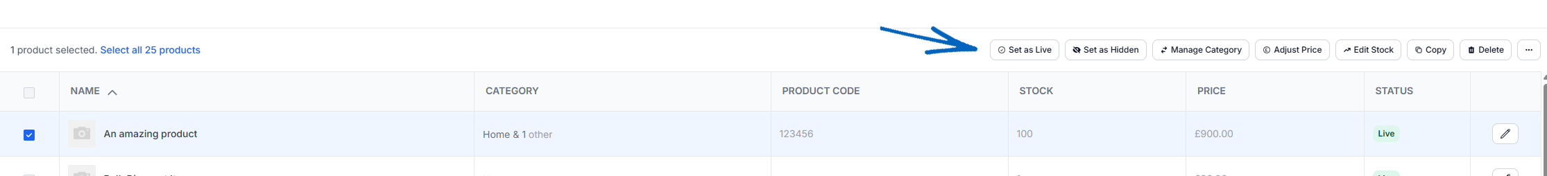Set as Live – Remove the product from being hidden and visible on the front end of your EKM online shop.