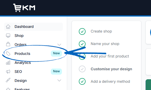 1. From the Dashboard, click Products on the left-hand side: